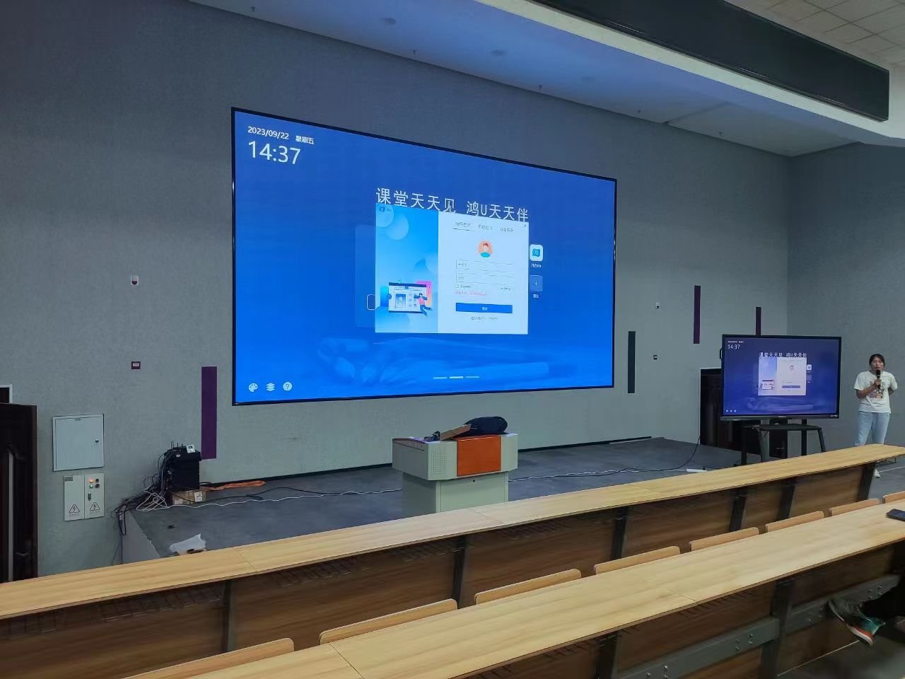 厂家技术人员对智慧屏、报告厅电子大屏、录播系统等教学用设备的使用、维护和管理迸行了讲解。参与培训的老师积极就相关问题进行咨询,厂家技术人员现场迸行了解答。