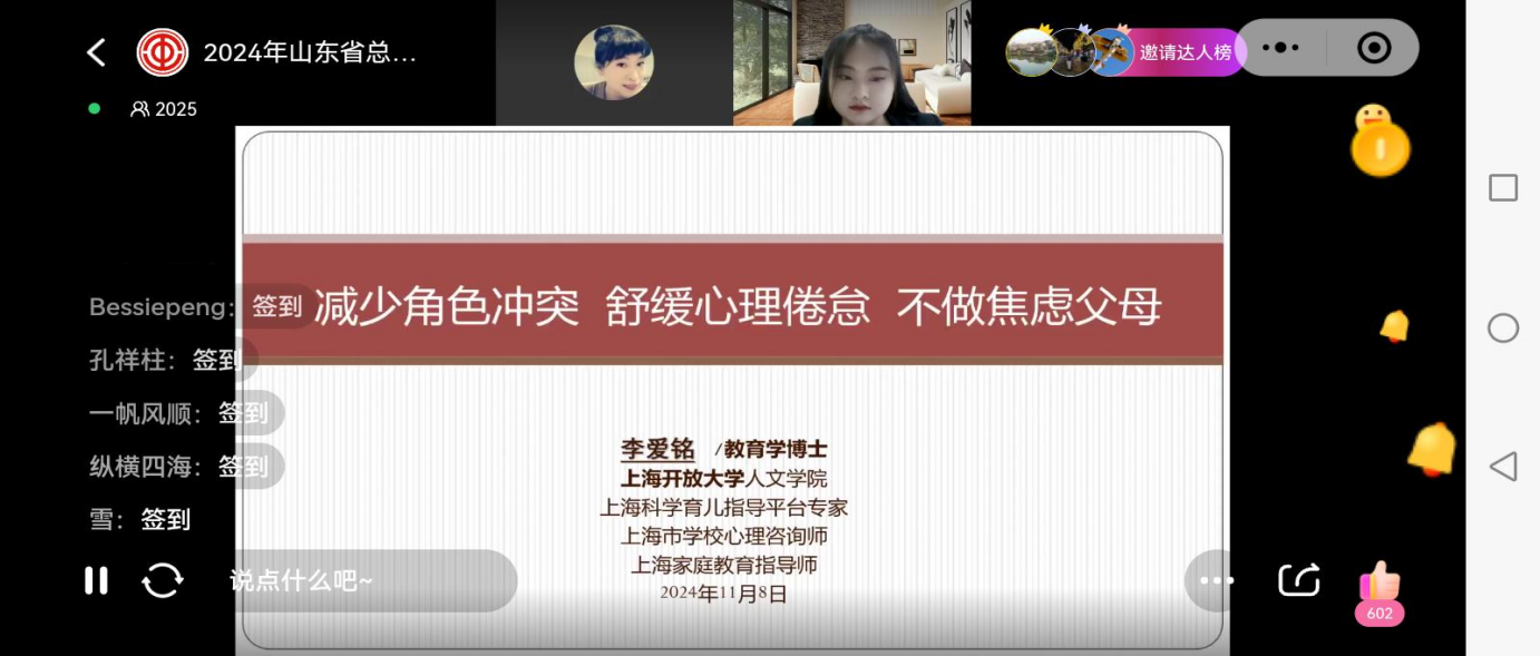 下午三点,我院全体教职工按时扫码进入直播间,整个直播间大家有序互动,李博士利用案例来引导各位教职工理智和孩子交往沟通,做到有效沟通。