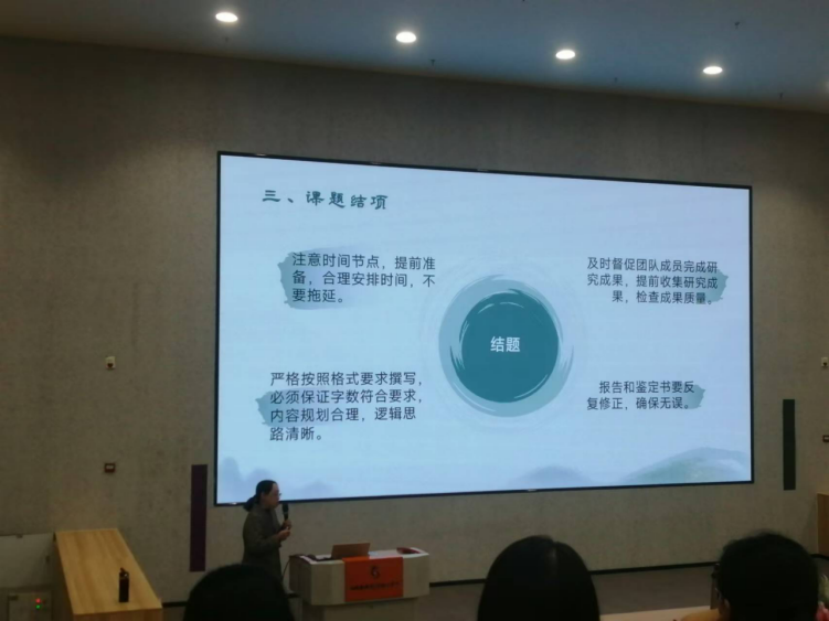 于老师从政策的学习,文件的阅读,做课题的态度及细致程度,分别展开讨论,告诉大家在做课题时一定要严谨细致,不可马虎,于老师从多个方面展开,解读社科类课题在申报和结题过程中注意的问题,让参与申报课题和学习申报课题的老师得到理论的指导和实践上的深化。