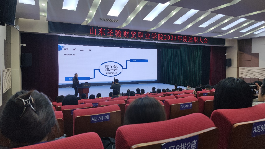 近日,山东圣翰财贸职业学院举行年度述职大会。信息工程学院杨院长代表学院在会上作年度工作述职报告,全面回顾与总结了本学年信息工程学院在教育教学、人才培养、师资建设、校企合作等方面取得的进展与成果,系统阐述了未来发展的战略思路与规划路径。学校主要领导及各职能部门负责人出席会议并听取汇报。