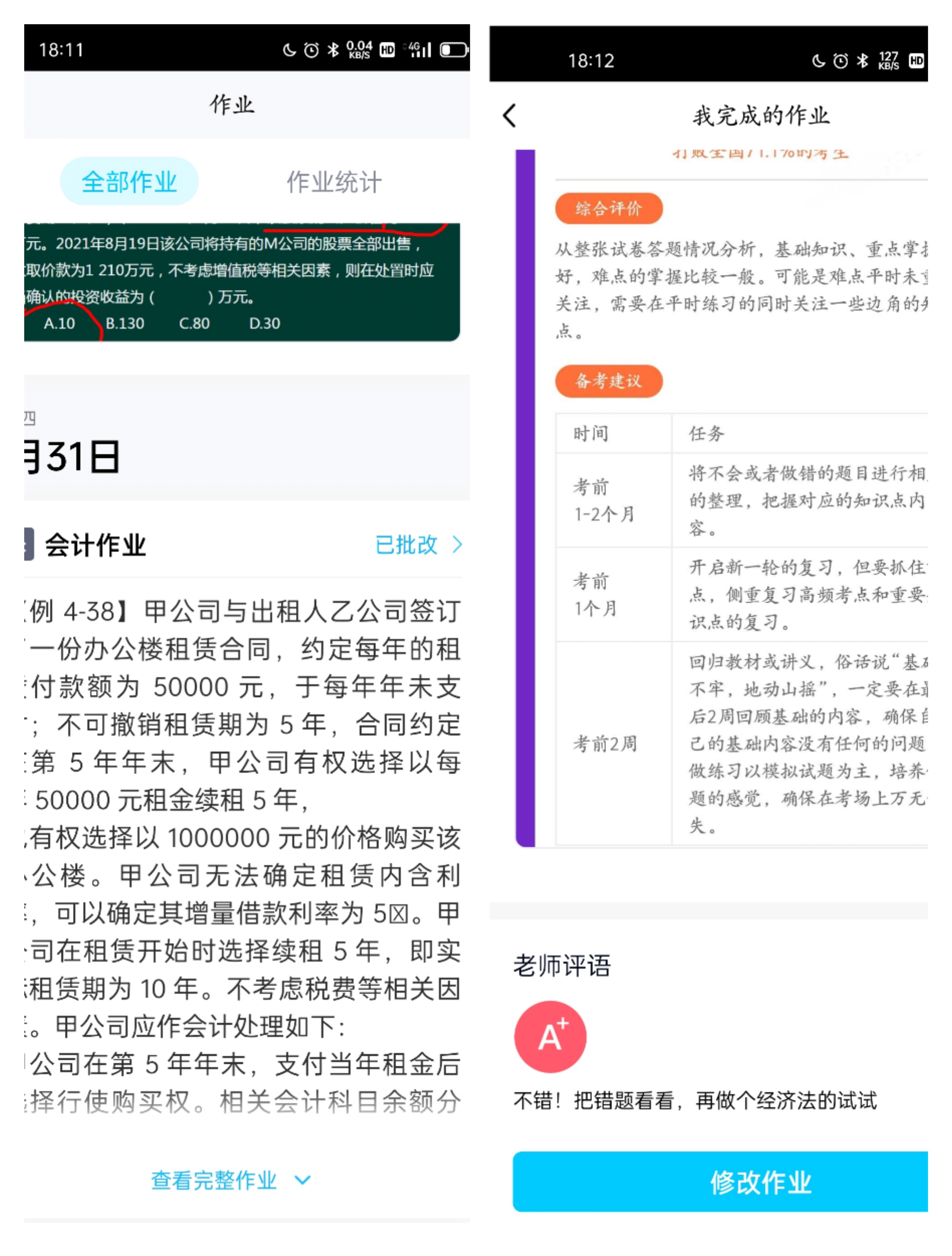 课程结束后,学生积极向老师反馈学习成果以及学习中遇到的问题,老师也积极与学生互动,即时点评,认真为学生答疑解惑,提高线上教学实效,保证线上教学效果。全体老师对于课堂作业的批改也是一丝不苟,或留言或批注,指导学生,力求帮助学生疏通知识、及时巩固。
