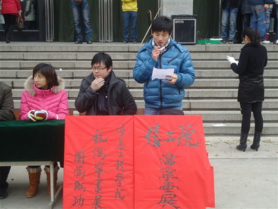 2010年12月23日中午,在信息工程学院领导的支持下,在学生会的精心组织策划下,举办的“发展校园文化,共建和谐圣翰”——王海宁个人书画展活动拉开了帷幕,并由信息工程学院团委书记戴宗瑞老师主持。据活动主要负责人称信息工程学院学生王海宁,利用课余时间将近期的30副作品展出,展板上一幅幅精美的书画作品呈现在大家眼前,是对他自己书画艺术的检阅,也是对自己的肯定。同举如椽巨笔,挥写胸中意气,从而促进校园文化、共建和谐圣翰的进展。