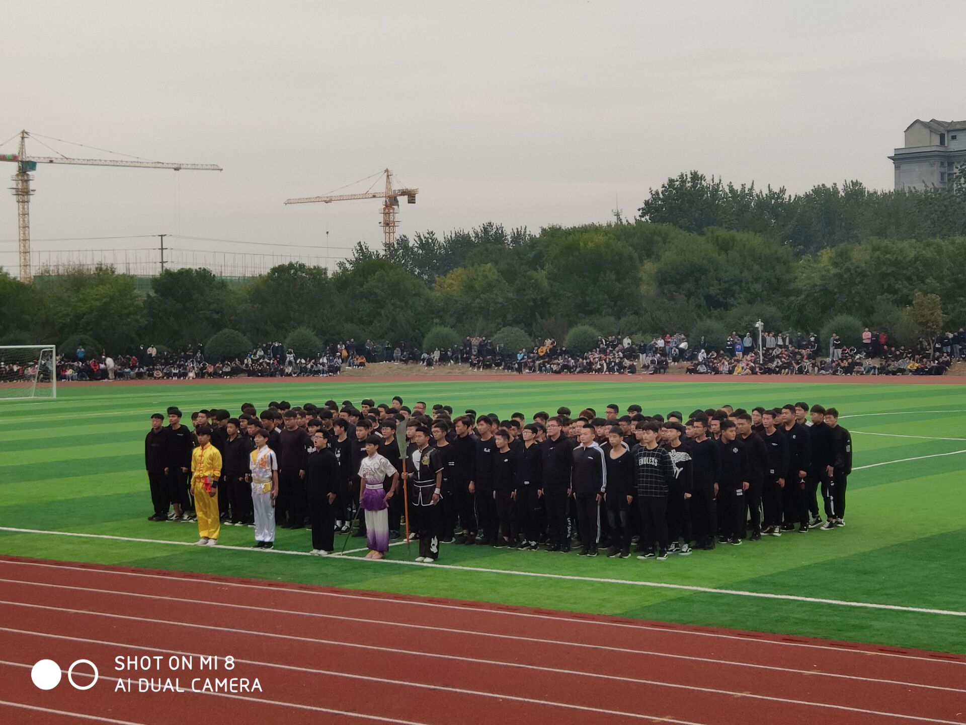 最让我记忆犹新的是舞蹈方队与武协方队,舞蹈方队的女生们身穿红衣黑裤,开始了美丽的舞蹈,以婀娜的舞姿与悦耳动听的音乐相结合,是那样的和谐美丽。每一个轻盈的舞步,每一个身体的律动都诠释着对生活的热爱,都是对灵魂的释放。武协方队的队员们现在表演的是五步拳——队员们姿势舒展、动作灵活、快速有力、节奏鲜明,展现了拳术的刚劲有力,常以发声助力、助威、助势。队员们的集体刀术表演也是刀如猛虎下山,威风凛凛,气势逼人,劲实力稳,表达出了中华武术阴柔之美与阳刚之美的和谐,将整个开幕式表演推到高潮。