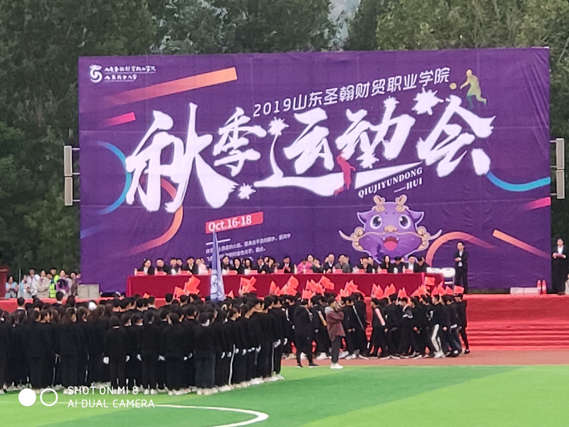 紧接着,伴随着庄严的国歌声,全体师生起立,奏唱国歌。冉冉升起的亓星红旗下,同学们的眼神充满激情与期待。