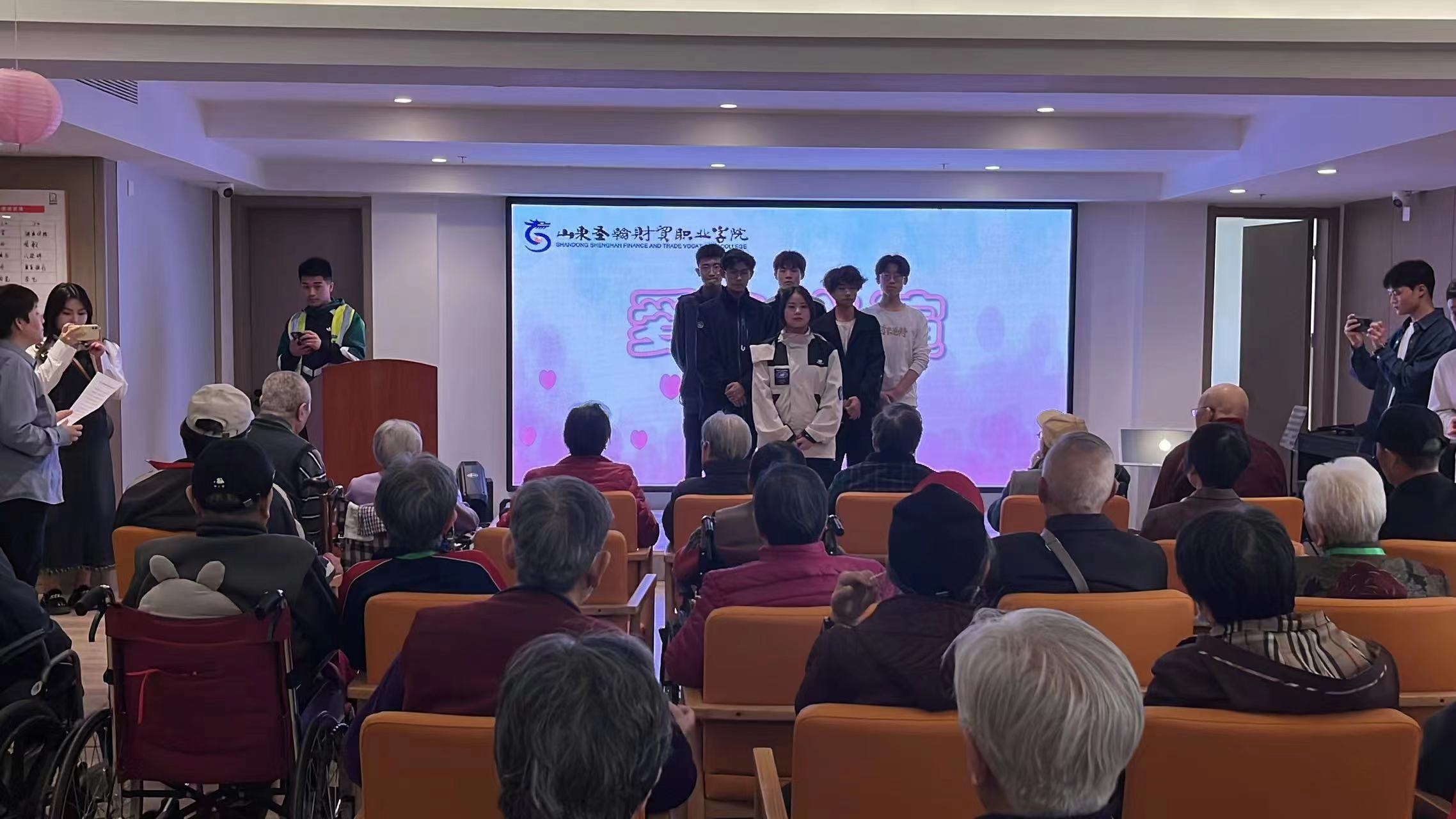 近日,由山东圣翰财贸职业学院信息工程学院、商学院、健康学院、国际交流学院、艺术学院五个学院组成的爱心义演团来到绿地新福家海泊天润康敬老院开展爱心慰问志愿服务活动,为老人们送去了关爱和祝福,让他们切身感受到来自社会的温暖。