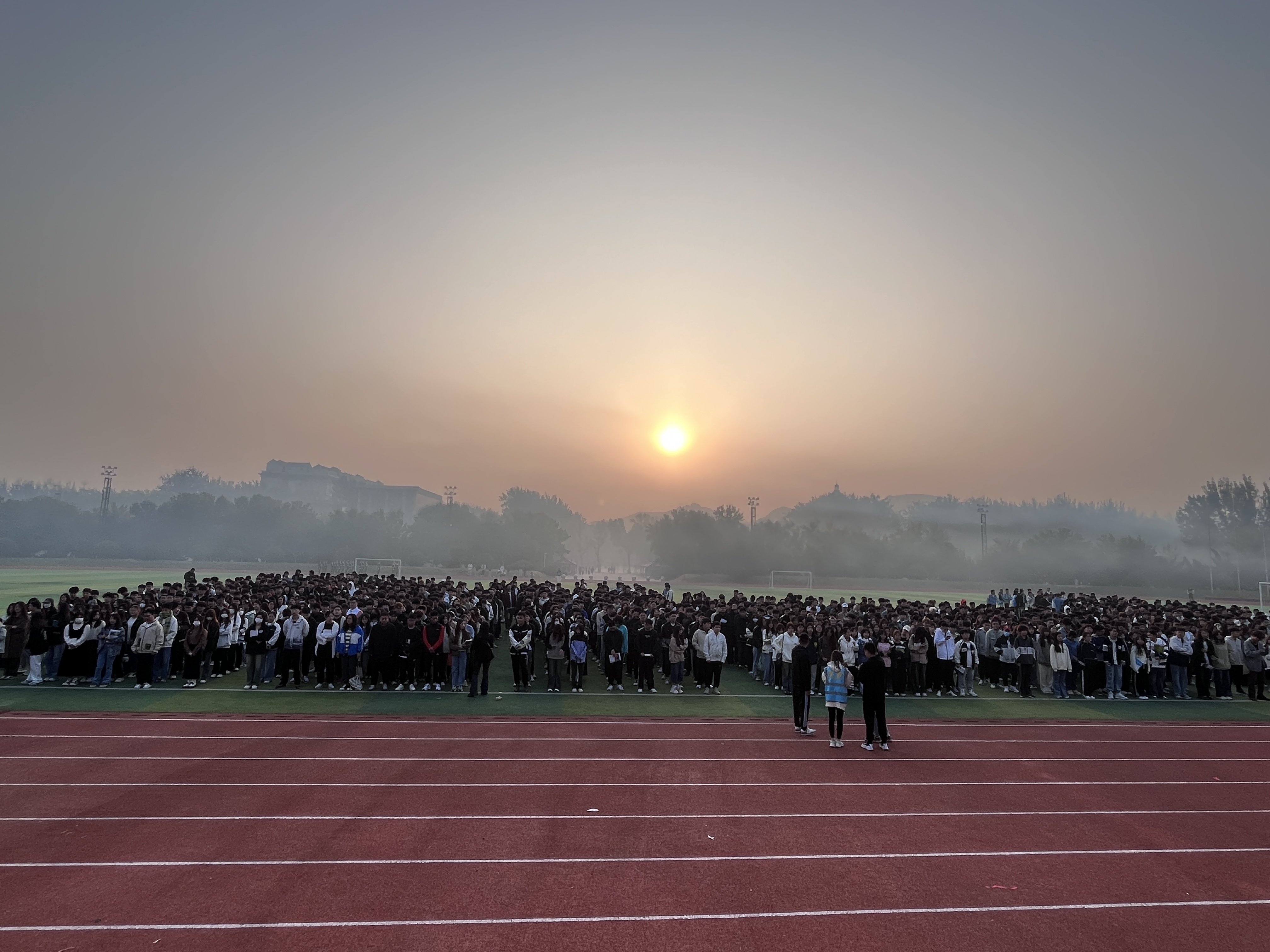 清晨七时,升旗仪式正式开始。国旗护卫队的同学们迈着整齐划一 铿锵有力的步伐,护送着五星红旗正步走向旗杆,全体师生面向国旗肃立致礼。随着激昂的《义勇军进行曲》响起,师生们注视着五星红旗冉冉升起,在熠熠晨光中迎风飘扬。升旗仪式固然简单但其爱国主义精神 红色基因传承万里