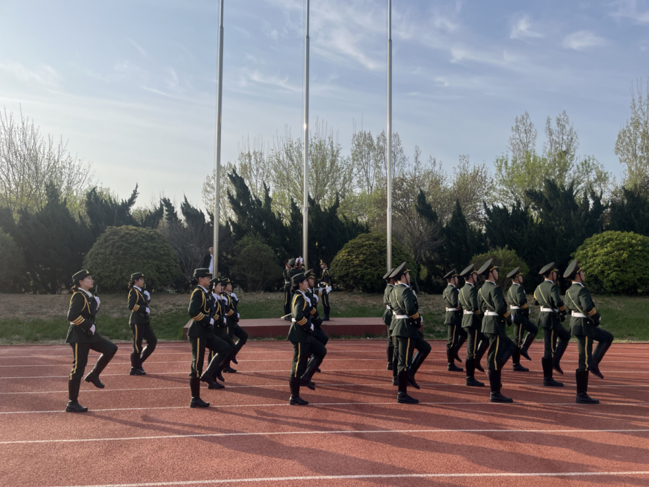 仪式伊始,国旗护卫队身着整齐的戎装,迈着铿锵有力的步伐,精神抖擞地走向升旗台。全体师生肃立,目光紧随国旗护卫队的步伐,心中充满了对祖国的敬仰与热爱。