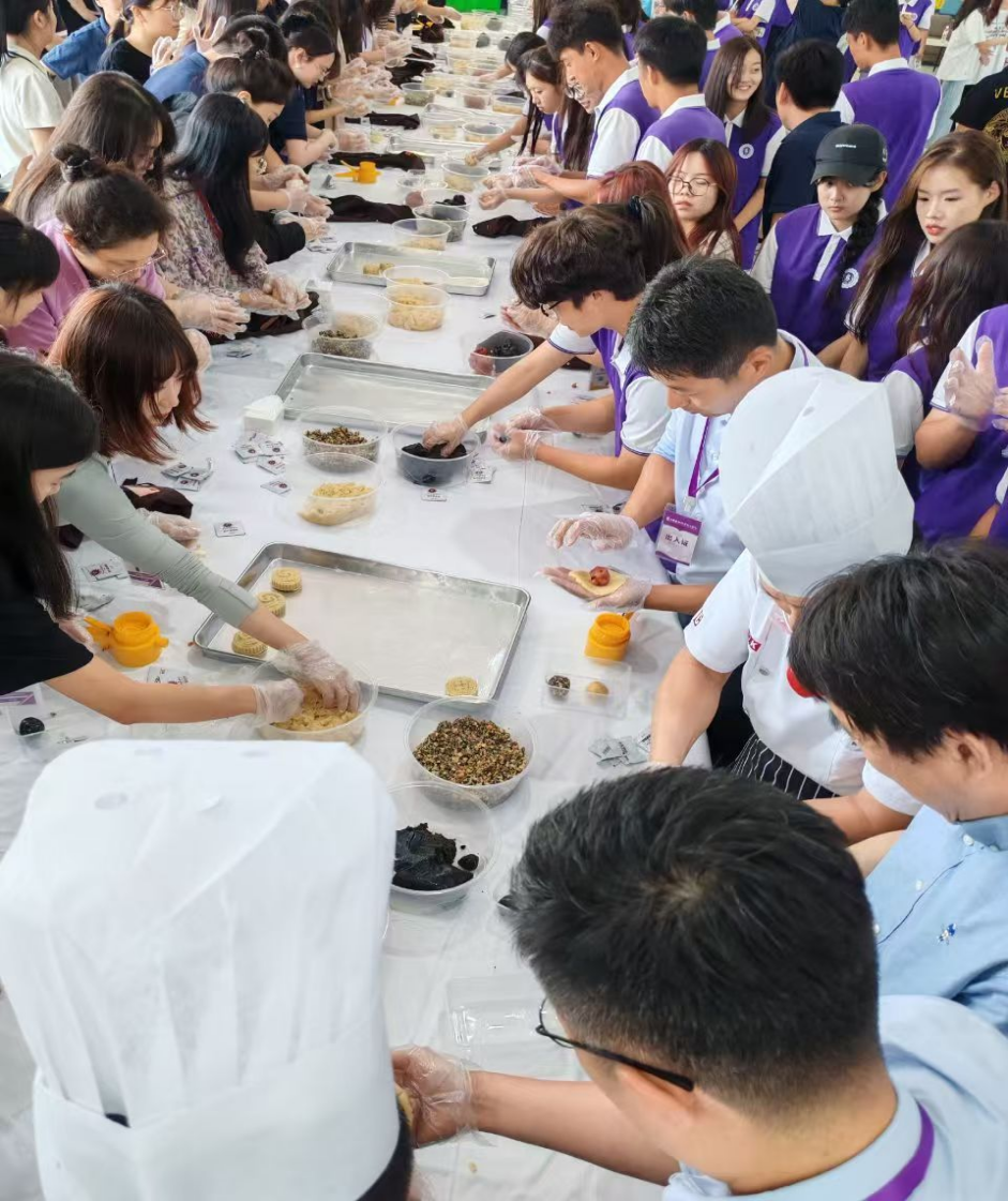 在这个充满团圆和感恩的日子里,师生共度佳节,不仅为了庆祝中秋节的到来,更是为了向辛勤工作在教育一线的老师们表达最诚挚的敬意,也同时让新入学的新生感受到圣翰财贸职业学院对新生的关爱。活动现场,笑声和欢乐的气氛弥漫在每一个角落,大家围坐在一起,手中揉捏着面团,精心包裹着香甜的馅料,共同制作出一个个寓意团圆美满的月饼。