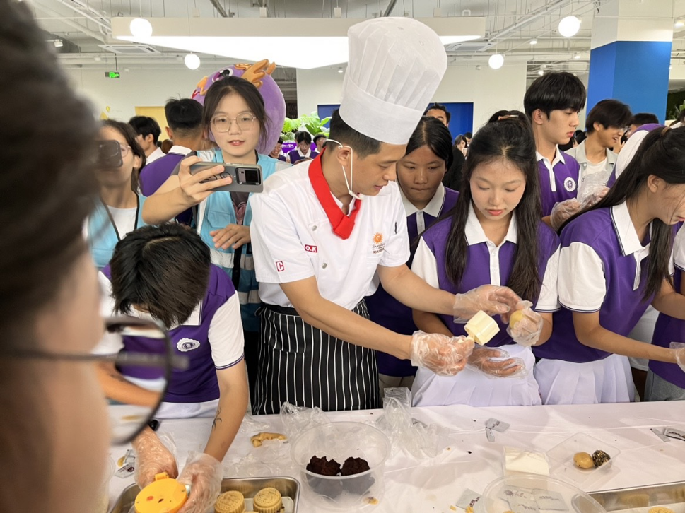 活动的高潮部分莫过于月饼制作环节。在老师们的指导下,学生们亲手制作起了月饼,从和面、包馅到成型、烘烤,每一步都充满了乐趣与挑战。大家边做边聊,欢声笑语不断,不仅学会了月饼的制作技艺,更在互动中增进了彼此之间的友谊与了解。最终,当一个个圆润饱满、香气四溢的月饼出炉时,每个人的脸上都洋溢着满足与幸福的笑容。