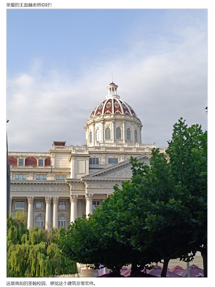 自活动发起以来,同学们积极响应号召,纷纷拿起手中的相机或手机,在日常学习生活中留心观察,并将那些触动心灵的一幕幕记录下来。无论是清晨第一缕阳光照耀下的图书馆、傍晚时分静谧而温馨的教学楼一角,还是雨后格外清新脱俗的小径旁,每一处都承载着属于它的故事。参与者们通过撰写简短的文字描述以及附上相关图片的方式,向王老师发送邮件分享自己的发现。