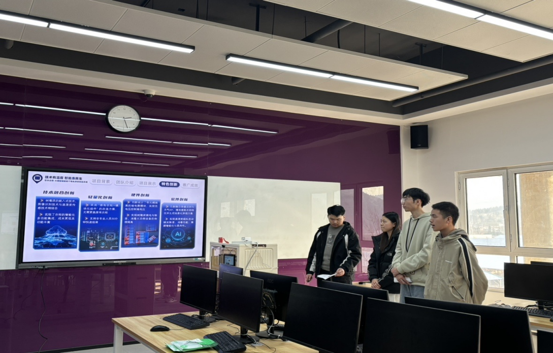 为提升团队实战能力,指导教师组织参赛学生在实训室进行了多轮模拟演练。演练严格按照比赛流程进行,团队成员分工协作,从硬件调试、模型优化到系统展示,全面检验项目展示效果。周五下午,更是特别邀请学院多名资深教师现场观摩指导。老师们从技术可行性、创新性及现场答辩表现等维度进行了细致点评,并提出优化建议。