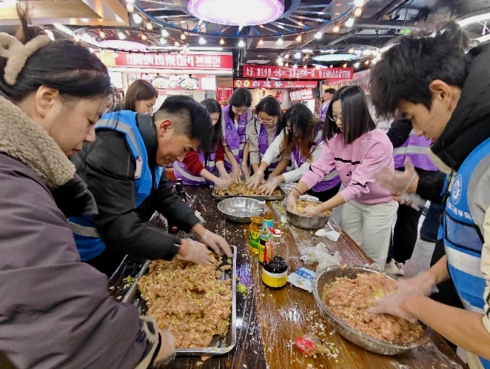 包饺子环节中,两院师生自由分组、分工协作,揉面、擀皮、包馅的过程里笑语不断。宣传部同学穿梭其间记录温馨瞬间,不少小组还创新出卡通造型、院系标识等特色饺子,最终“最具创意饺子奖”的评选让现场氛围愈发热烈。