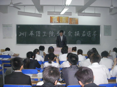 2011年6月5日晚,信息工程学院在教学楼D207教室召开学生会换届竞选演讲大会。出席本次大会的有信息工程学院团总支书记戴宗瑞、辅导员谢广斌老师及学生会09级主席团成员。本次竞选大会共设立了主席、副主席、秘书长、纪检部、学习部、生活部、宣传部、外联部、文艺部、体育部7个部门的部长和副部长。选手主要是来自学生会10级各部骨干。
