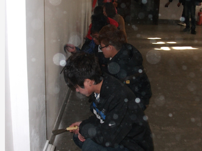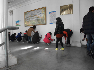 中午下课后,同学们在教学楼门前集合,以部门为单位对老教学楼各层墙面进行了清洁工作。虽然此项活动并非惊天动地的大事情,但同学们干活的热情和干劲,深深感动了路过的每一位老师和同学。