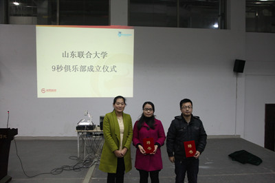 随后,9秒高校俱乐部渠道经理李聪聪为大家详细介绍了俱乐部的情况,期间播放了几段其他高校学生自制小游戏的视频,激发了在场学生的浓厚兴趣。介绍完成后,9秒俱乐部项目负责人潘永强经理向俱乐部学生主席颁发“9秒俱乐部”授牌;我校信息工程学院盖晓艳院长向计算机教研室刘永波老师、孙崇晓老师颁发了9秒俱乐部指导老师聘书。