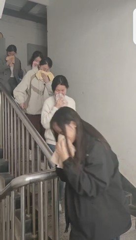 演练现场,学生在各位老师以及学生会干事、干部的指挥下,迅速打湿毛巾,捂住口鼻,压低身体,有序撤离。为确保安全,我院进行了严密部署,对每层楼逃生口都配有专门教师指挥,有序引导撤离,以防人多慌乱之中发生踩踏事件。演练结束后,学部领导对本次活动做出总结,让学生熟记每个宿舍的逃生路线,强调有序撤离的必要性。