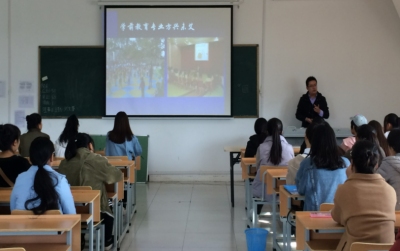 图为张小宾院长为学生讲解学前教育专业发展的趋势