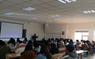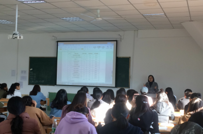 图为谢芳副院长为学生介绍本科班独立编班以及授课计划