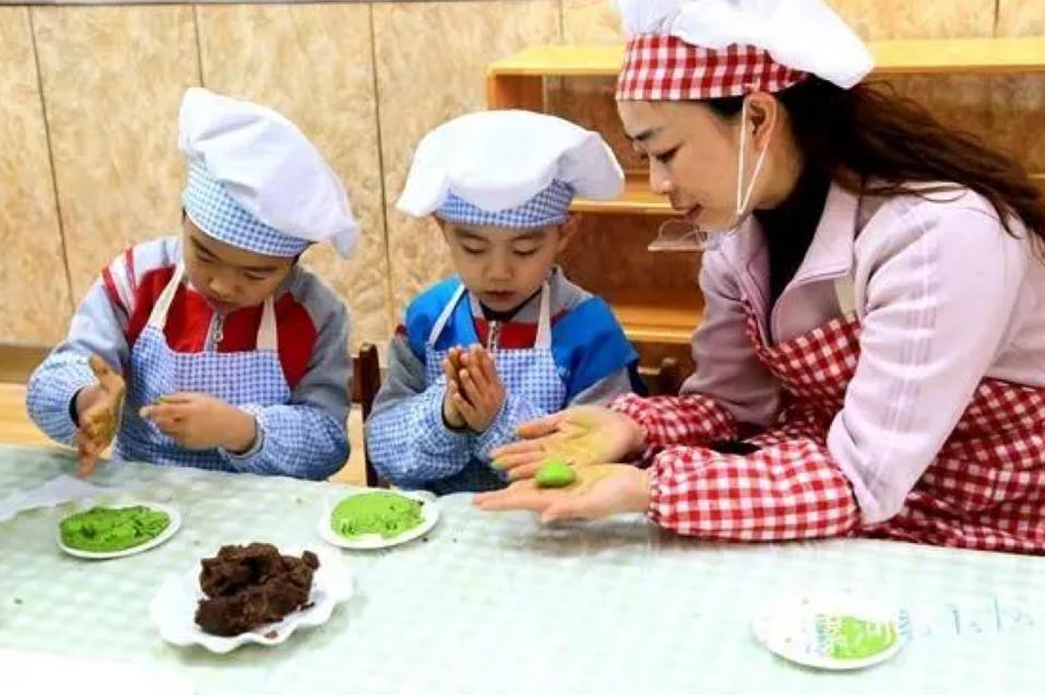清明节习俗丰富,归纳起来是两大节令传统:一是礼敬祖先,慎终追远;二是踏青郊游、亲近自然。经历史发展,清明节杂糅了多地多种民俗为一体,逐渐有清明插柳、植树、蹴鞠、放风筝、画彩蛋、吃青团等习俗。为了让幼儿感受特色节日文化,老师们准备了制作青团的食材,让孩子们动手体验。孩子们认真的揉搓面团,用手压扁,再包裹进豆沙馅料,小手搓一搓、团一团,一个青翠欲滴的青团就做好了。孩子们把制作好的青团分享给老师和弟弟妹妹们,共同品尝节日特色食品。青团不甜不腻,带有清淡却悠长的青草香气,从色彩到口感都有着春天的气息和悠远的历史文化韵味。