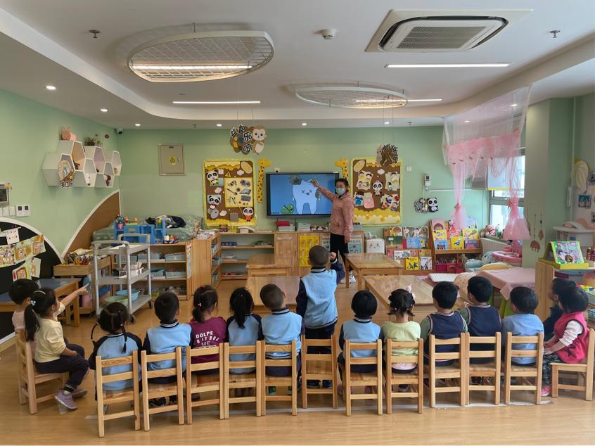 一日活动中,各班根据幼儿的年龄特点,以幼儿喜爱的形式,开展了丰富多彩的教学活动。老师向全体小朋友介绍爱护牙齿的重要性,如何保护自己的牙齿等,鼓励大家争做一个口腔健康的孩子;保健医生和小朋友一起观察牙齿模型,给孩子们讲解牙齿的结构、分类、牙齿容易得哪些病、如何治疗等,现场给孩子们检查牙齿健康,有没有龋齿,让孩子们清楚地知道了自己的牙齿情况。“小牙刷,手中拿,张开我的小嘴巴,上面牙齿往下刷,下面牙齿往上刷,左刷刷、右刷刷,里里外外都刷刷……”通过说唱《我会刷牙》的儿歌让孩子们学会了正确的刷牙方法;故事《小熊拔牙》、综合活动《我的牙齿》等,使孩子们懂得了清洁口腔、早晚刷牙、合理饮食、限糖减酸、窝沟封闭、牙齿涂氟、定期检查、早防早治等更多关于口腔和牙齿的知识,掌握了正确的护牙方法。孩子们郑重的承诺:“从小养成刷牙习惯,保护牙齿从我做起”!