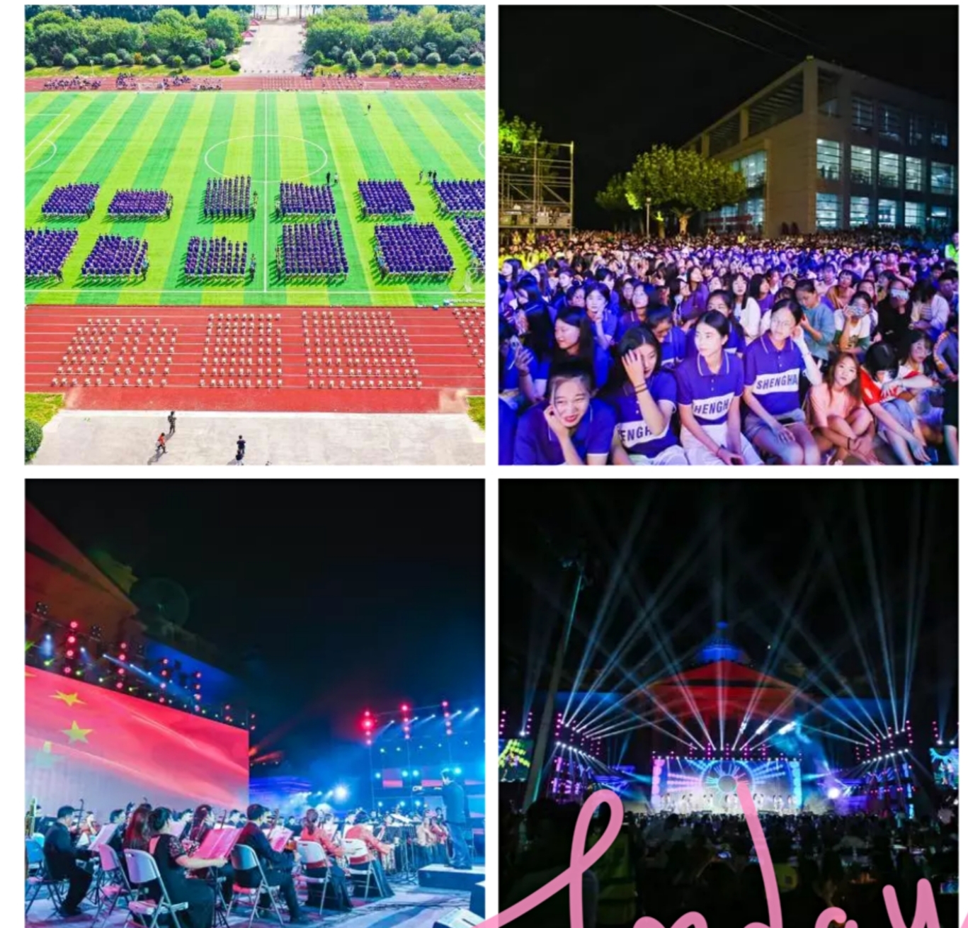 在去年九月份为庆祝新中国成立70周年,建校20周年,为了激发广大师生爱国爱党的热情,山东圣翰财贸职业学院"与国同庆 辉煌圣翰"大型晚会在学校主教学楼前隆重举行,有很多学姐学长们给我们表演节目,舞台布景,灯光都恰到好处。在之后的元旦,我记得很清楚,几乎每个社团、院会、青年志愿者协会或班级……都会举行晚会,街舞秀、魔术表演,还有小品,总之吃的喝的玩的看的,那是一样不少,非常欢乐,在之后还有一周一次的“读书心得”活动,圣诞节,万圣节......这可不是一会就能说完的。