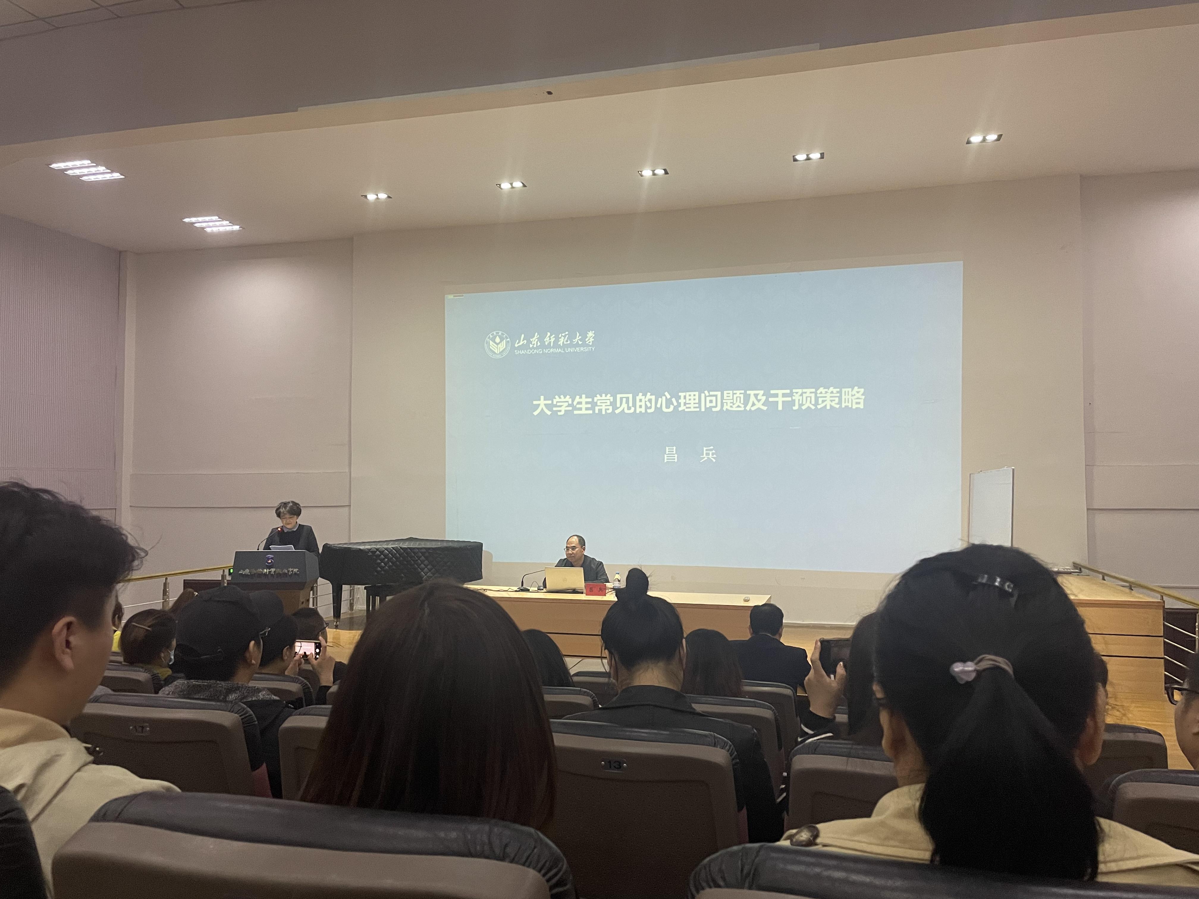 11月13日,山东圣翰财贸职业学院于吉纯楼第一报告厅举办“大学生常见的心理问题及干预政策”讲座。本次讲座由山东师范大学心理学副研究员昌兵担任主讲人,艺术学院全体辅导员到场聆听。