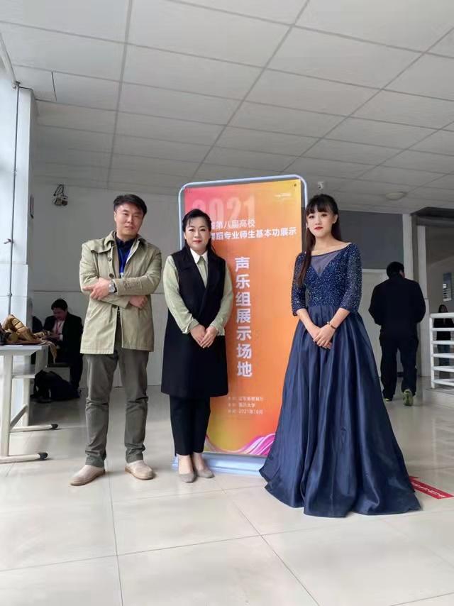 此外,在本次比赛声乐组比赛中,艺术学院的学生表现优异,荣获专科组三等奖。图为指导教师秦超,钢琴伴奏邵亚坤老师以及获奖学生栾子琼。