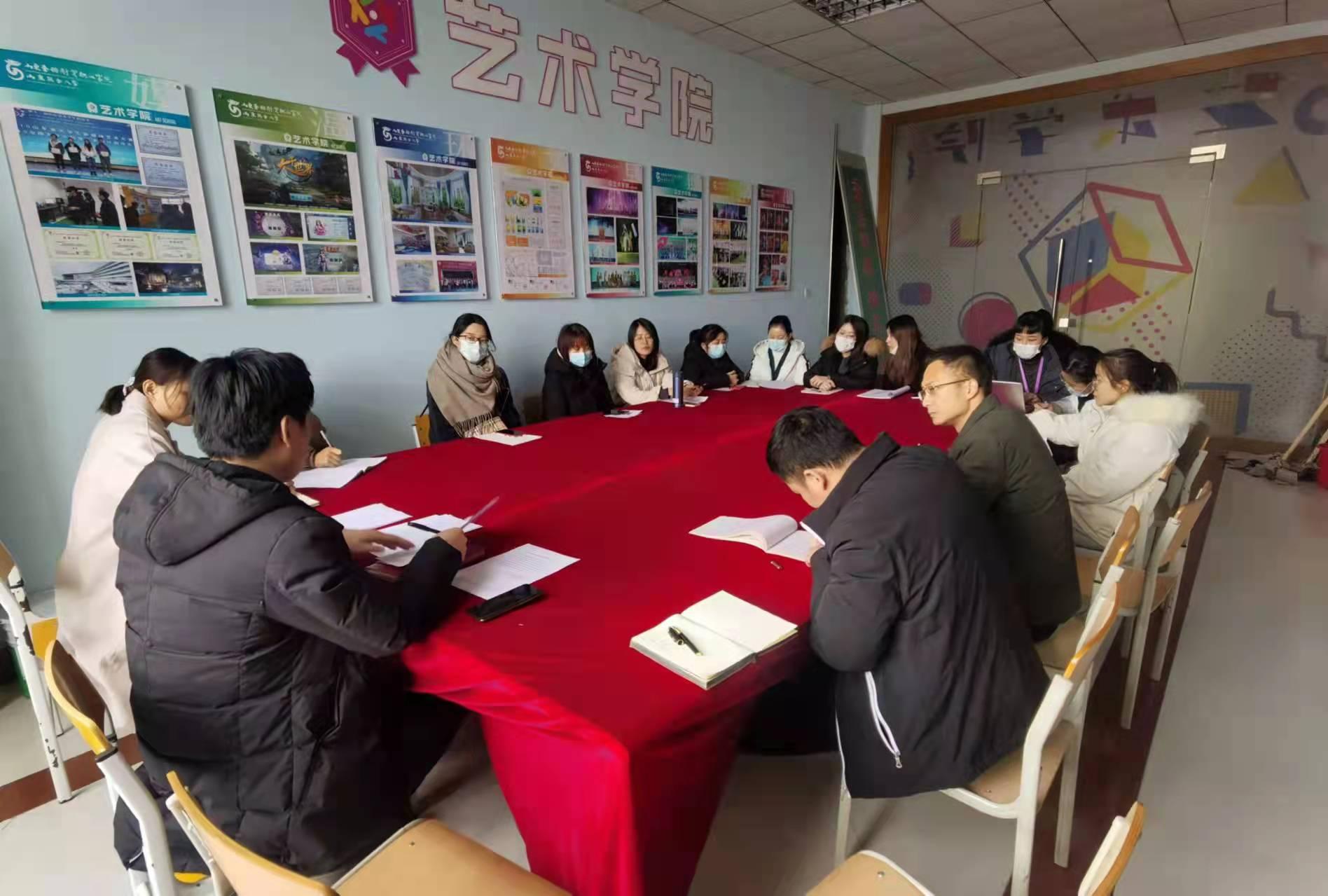 2022年1月14日,艺术学院25名正式党员,3名预备党员于艺术学院会议室召开关于山东圣翰财贸职业学院艺术学院党支部委员会成立会议。