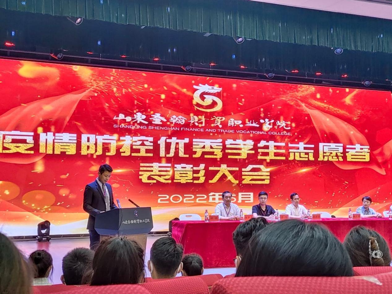2022年5月31日在山东圣翰财贸职业学院吉纯楼第二报告厅,举行了疫情防控优秀学生志愿者表彰大会,从2022年3月初到5月中旬,是各二级学院的志愿者们,不惧黑夜,不惧风雨,不惧烈日的站在校园疫情防控的志愿者岗位上,那有什么岁月静好,只是有人替你负重前行。