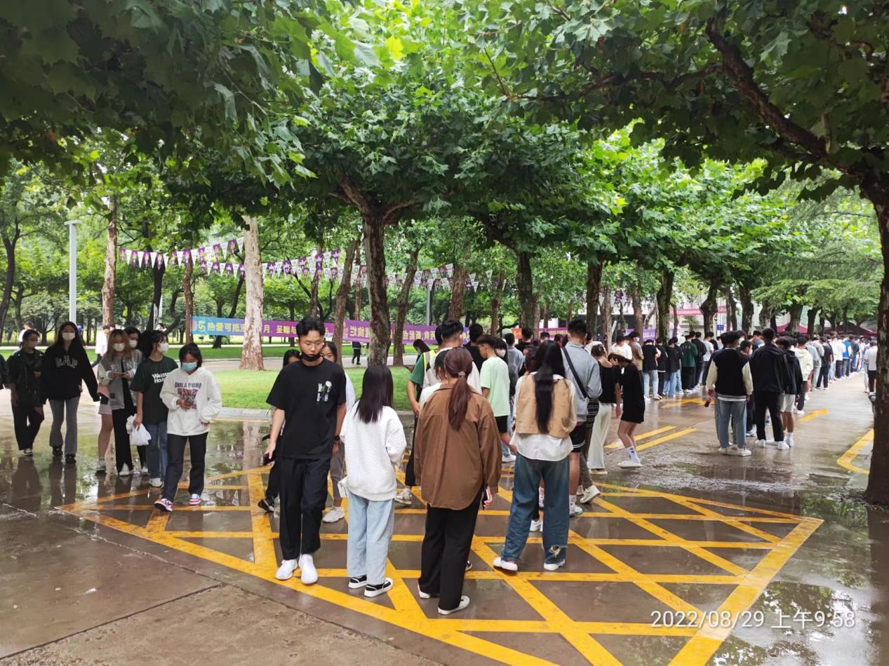新生报道后,立即组织展开了核酸检测,各班辅导员以及班级助理现场指导学生操作。