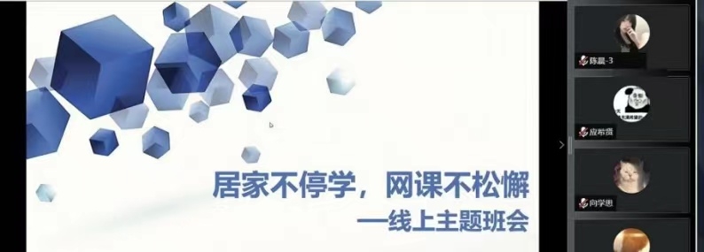 班会上,辅导员就班上线上教学考勤、学习效果以及班级管理及时进行小结,向学生强调线上教学纪律,落实疫情防控政策,并对学生们反馈的心理困惑给予积极回应。