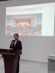 如今旗帜以高高挂起,蓝图以精心描绘,还是我们书写答卷的时候了,同学们,让我们高举社会主义伟大旗帜,万众一心,开拓奋进,积极贯彻落实党的十九大精神,在接受党和人民群众的检验和考核中交一份完美的答卷!