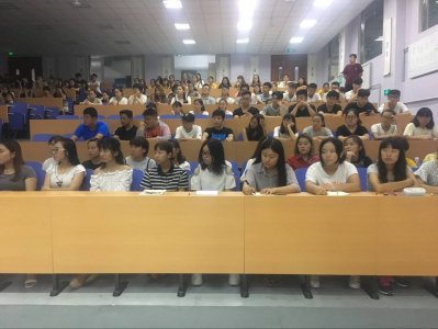 8月26日下午两点三十,已经报到的280名艺术学子齐聚第三报告厅,集体观看励志电影《国家代表》。