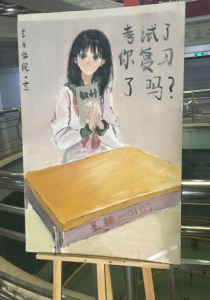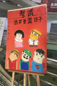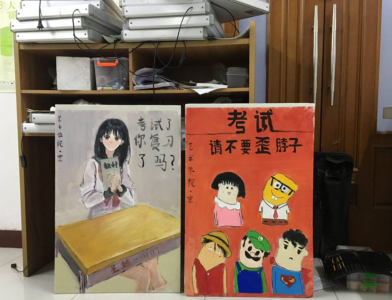 其中,史笑傲同学根据很多考生考试会出现偷看他人试卷,歪脖子的现象进行有主题的绘制,史笑傲同学希望提倡文明考试,规范自我,引发同学们的共鸣。王志男同学测根据很多同学考前不复习,不努力的现象进行正面宣传绘制,绘制一名少女手拿书籍在书桌前进行学习,提倡自己掌握知识,没复习使人忧虑,学习使人快乐、美丽。两名同学不仅在制作海报过程中牺牲空余时间,而且相互帮助,相互交流,最终完成令人满意的作品,两份作品放置在综合教学楼下面进行展出,并将思想不断传播,反响良好。
