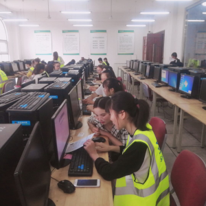 而我们在为新生服务解惑时,让我们不禁想起了自己刚来学校报道的时候,学哥学姐们的微笑,热情深深地感染了我们。 同时门口的接待人员热心的回答家长们问的问题。今天前来报道的学弟学妹们有序进行的进行报道环节。