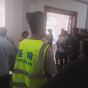 综合楼的每一角都处在忙碌当中。每一个报道环节都能看见穿着统一服装的学长学姐们,耐心的为新生及新生家长们排忧解难。