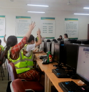 在信息录入途中,会不断有新生进入录入室,而录入员们会举手示意可以进行信息采集录入。