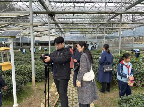 随后,摄影创作与技术交流环节拉开帷幕。在景区指定区域,济南市摄影家协会的老师们率先示范,围绕红色元素捕捉、自然景观构图、人文风貌呈现等方向展开创作;云商传媒学院教师则结合专业所长,积极探索光影运用与色彩搭配技巧。创作过程中,协会老师们还针对成员提出的拍摄疑问现场指导,从手机摄影参数调整到画面意境营造,细致分享实用经验,现场交流氛围热烈。