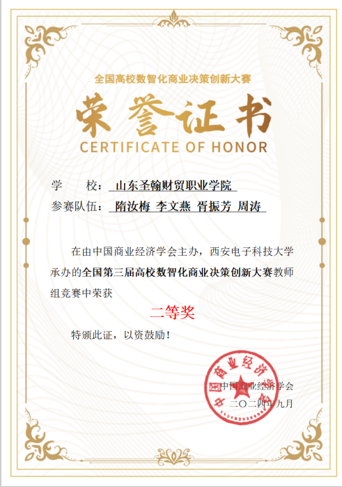 金秋九月,硕果累累的季节里,云商传媒学院的教师团队凭借其卓越的专业素养、创新的教学思维以及出色的策略制定,在全国第三届高校数智化商业决策创新大赛教师组竞赛中取得二等奖的优异成绩,展现了学院在数智化教育领域的深厚实力和卓越成果。