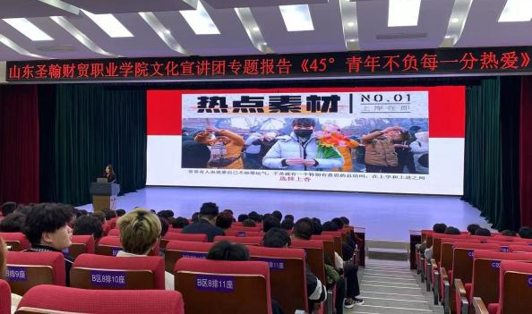 2024年11月14日,山东圣翰财贸职业学院文化宣讲团在吉纯楼第二报告厅开展文化宣讲活动,本次宣讲由云商传媒学院教师杨越做《45°青年,不负每一分热爱》的专题报告,此次专项报告是为了在当今社会高压环境下,更好的让学生做好45°青年,帮助学生找到一种介于“躺平”和“内卷”之间的生活态度,从而更好地应对挑战、保持心态和实现个人成长。