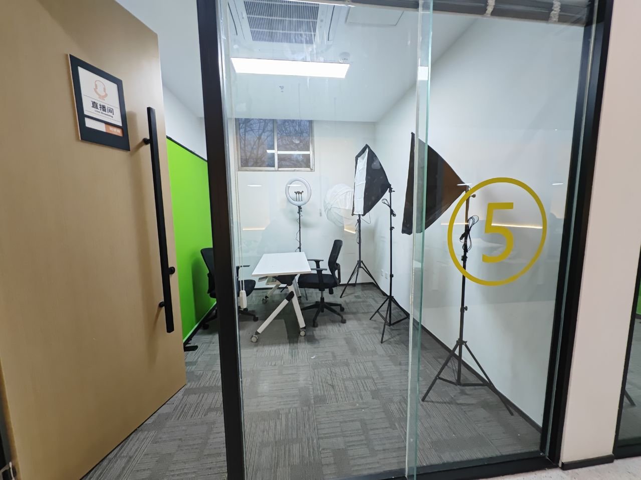 目前云商传媒学院直播间选址在学校创梦空间,共设置5个直播间,所有直播间均配备必要的直播设施,包括手机支架、平板补光灯、圆头补光灯、环形灯、绿布、摄像机和麦克风等,充分满足直播环境需求。所有直播间环境相对独立,适用于教师指导、学生学习和实操训练、观看直播、参加比赛等活动,