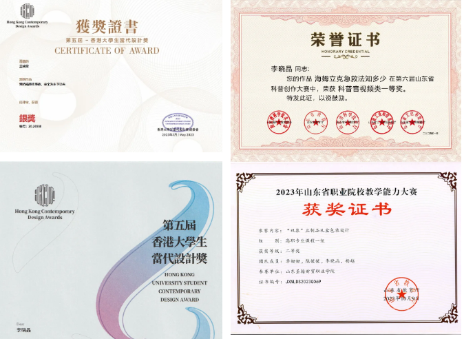 数字媒体专业教师将技能大赛与课程结合,实现课赛融合,积极指导学生参加各类大赛。近三年来,教研室教师指导学生参加山东省大学生新媒体科学艺术创意大赛、上海合作组织国家职业技能大赛、国际环保公益设计大赛等各项赛事,并获得省级一等奖2项、二等奖十余项、三等奖奖励30余项。