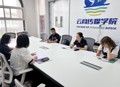 为深化教育教学改革,推动课程体系建设,5月28日,创新创业学院苏艳艳、司洁两位教师深入云商传媒学院,就《大学生职业生涯规划与就业指导》课程实施情况开展专项调研。云商传媒学院孙建国、于芃、付洋三位教师参与座谈交流。