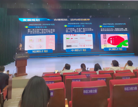 为备战此次校级大赛,云商传媒学院组建了由专业教师组成的指导团队,从项目选题初期便介入指导。师生们利用课余时间召开项目研讨会,反复打磨方案细节—从市场调研数据的补充完善,到项目落地可行性的论证,再到答辩 PPT 的逻辑优化,每一个环节都精益求精。