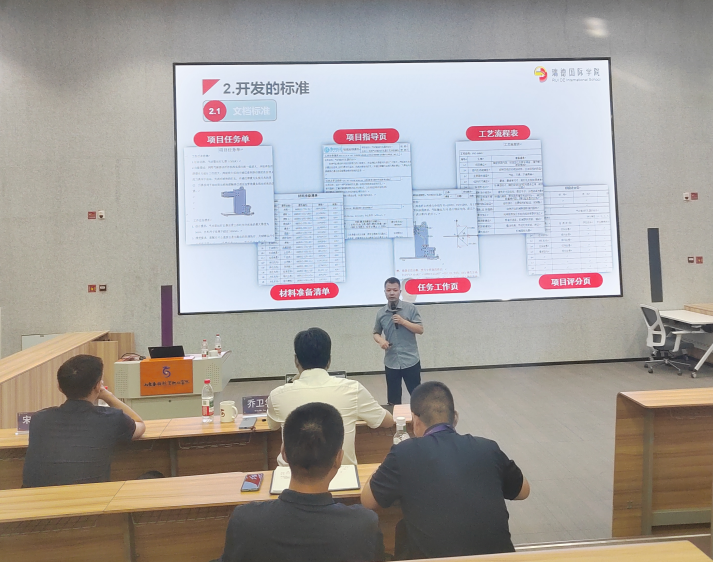 随后,宋立志围绕项目实物课件开发的标准对文档标准和工作页标准进行了解读。接着,在项目实物课件开发流程的讲解中,宋立志提出了实用的“四步法”。此外,宋立志还分享了项目实物课件在实际教学中的应用场景与方法。