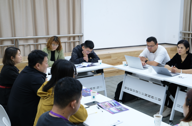 动漫数媒教研室主任李晓晶详细介绍了当前课程体系、学生学习状态及未来发展规划。教研室教师并就如何与企业需求对接、优化课程设置等问题与时光坐标的领导进行了深入探讨。双方一致认为,应围绕行业发展趋势,共同开发符合市场需求的专业课程,加强实践教学环节,提升学生的专业技能和创新能力。