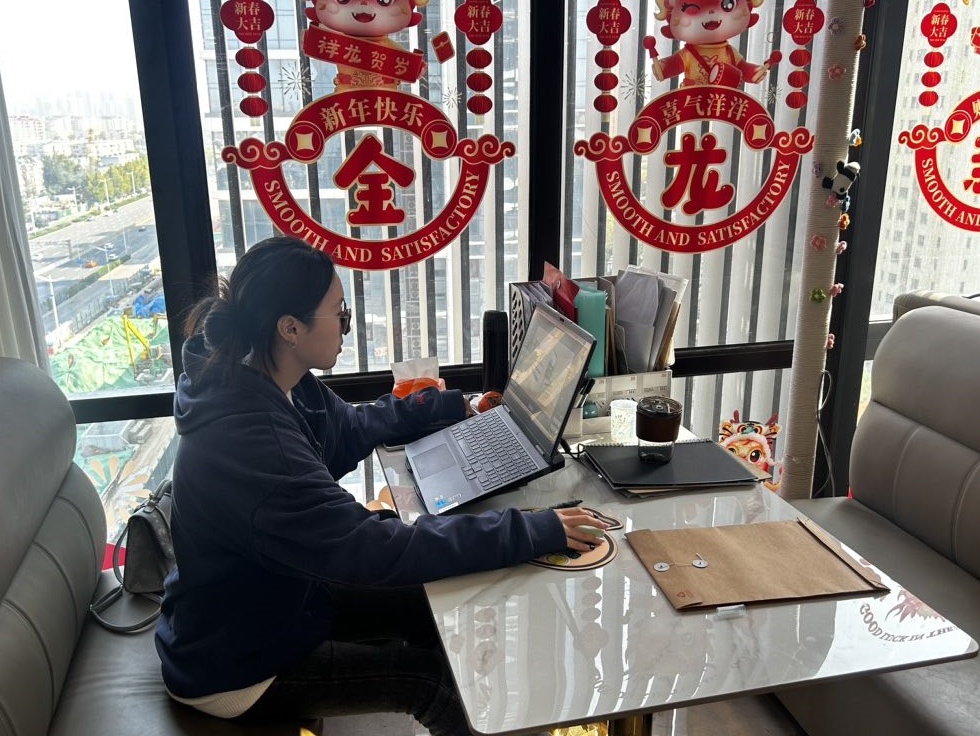 在千翼装饰有限公司,付洋老师观摩了实习生们的工作过程,并详细询问了他们的工作内容、岗位职责、技能提升以及生活状况等方面的情况。实习生们纷纷表示,在这里,他们不仅接触到了最前沿的装饰设计理念和技术,还在实际工作中得到了锻炼和提升。