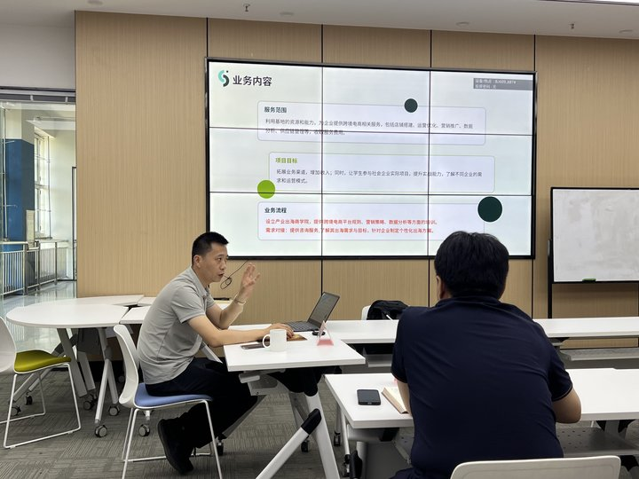 研讨环节,双方聚焦实训项目中的关键模块进行了深入探讨,包括跨境选品、内容创作、直播运营及数据分析等方面。双方一致认为,通过引入企业真实项目,让学生在实战任务中“干中学、以工带学”,是实现技能高效转化与人才培养目标的有效路径。基于此共识,双方就深化合作、推动项目落地达成明确意向。