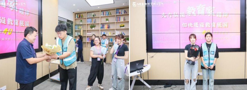 九月的微风,轻拂着校园的每一个角落,仿佛在低语着桃李满天下的佳话。在这个特别的日子里,我们迎来了第40个教师节,为了广泛颂扬新时代人民教师“四有”好老师的典范形象,进一步传承尊师重教的传统美德,弘扬教师的高尚师德,云商传媒学院于9月10日在创梦空间路演室举办了以“大力弘扬教育家精神 加快建设教育强国”为主题的庆祝活动,向辛勤耕耘在教育一线的园丁们致以最崇高的敬意和最真挚的感谢。