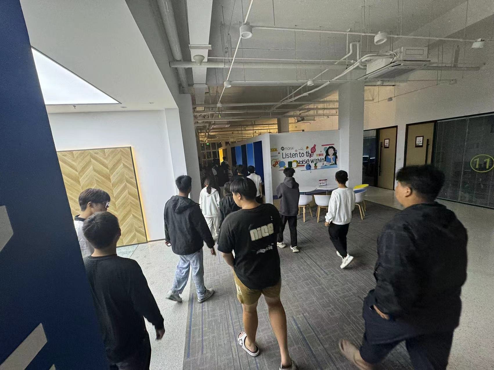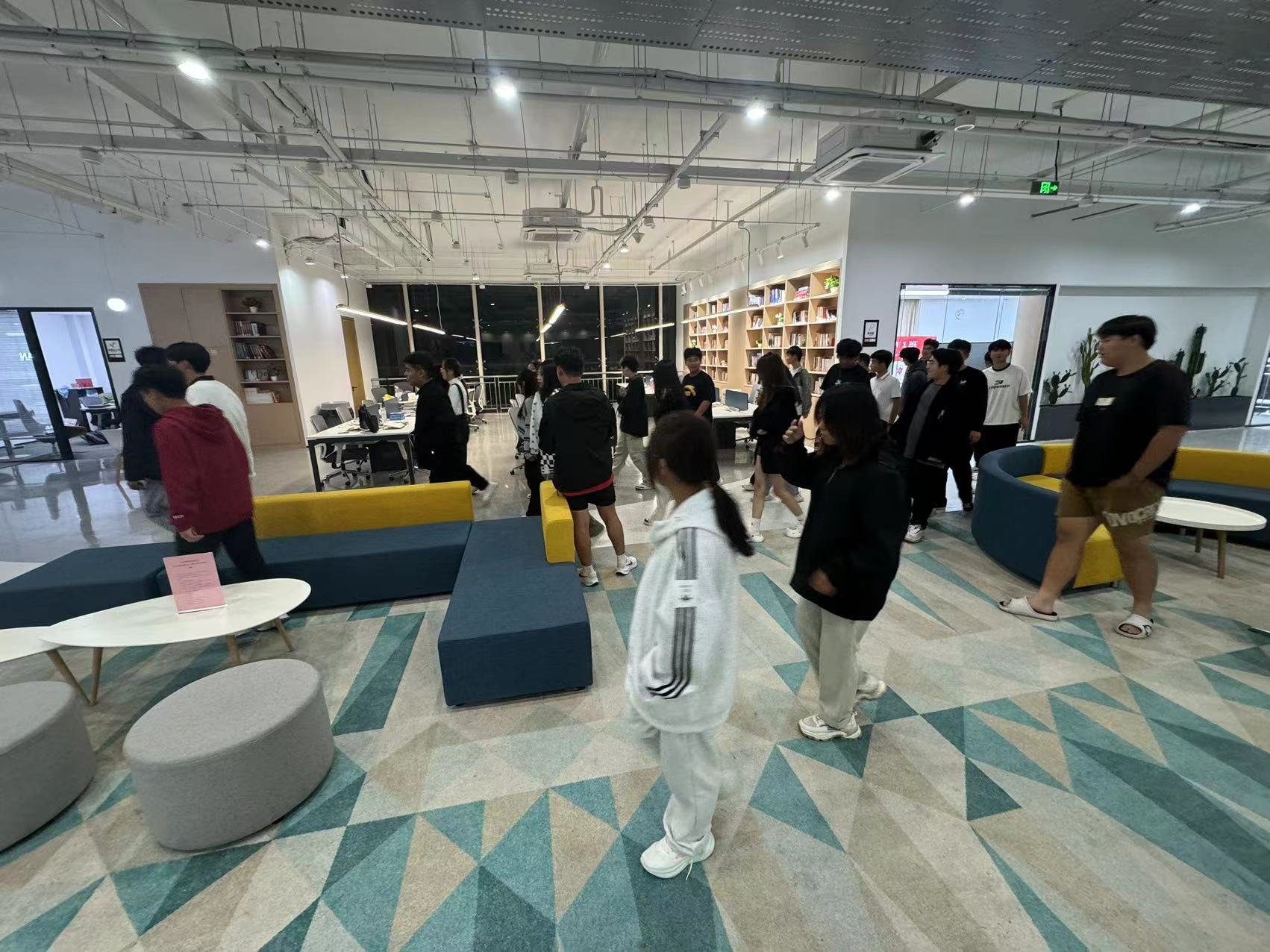 随后,新生们在自律委员会志愿者的引导下,分为两个小组有序进入创梦空间。在路演室,他们见证了无数创意项目从这里走向市场的辉煌历程;在直播间,他们亲身体验了新媒体传播的无限可能;在项目孵化区,他们与正在努力奋斗的创业者面对面交流,感受那份对梦想的执着与追求。每到一个区域,引导员都会详细介绍其功能、特点以及使用情况,让新生们对创梦空间有了更加全面而深入的了解。